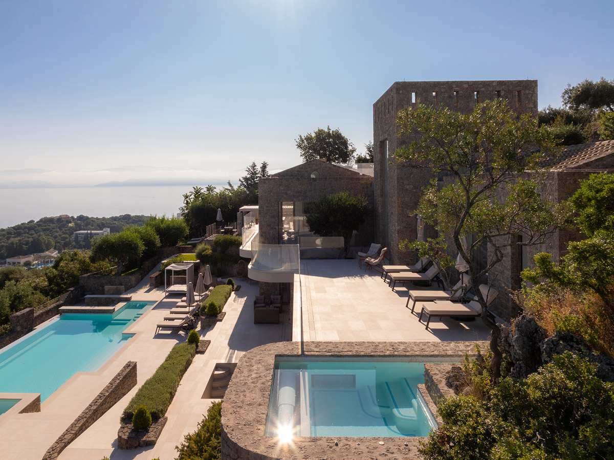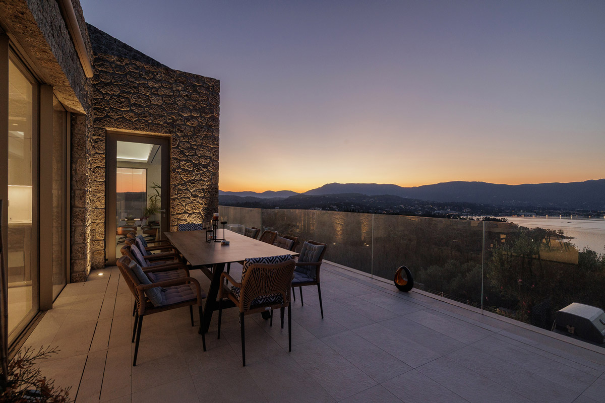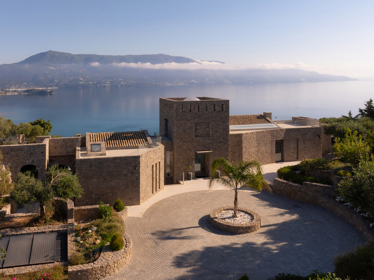 A new Corfu house, designed as a holiday home by architects Tony Wynbourne, Metron Design (Makis Gisdakis & Associates) and Georgios Apostolopoulos, balances the tightrope between the Greek island’s local vernacular forms and materials, and a sense of 21st-century minimalist architecture. Located on a hill facing the calm waters of the surrounding blue sea, this project was conceived to make the most of its 180-degree vistas and natural environment.
