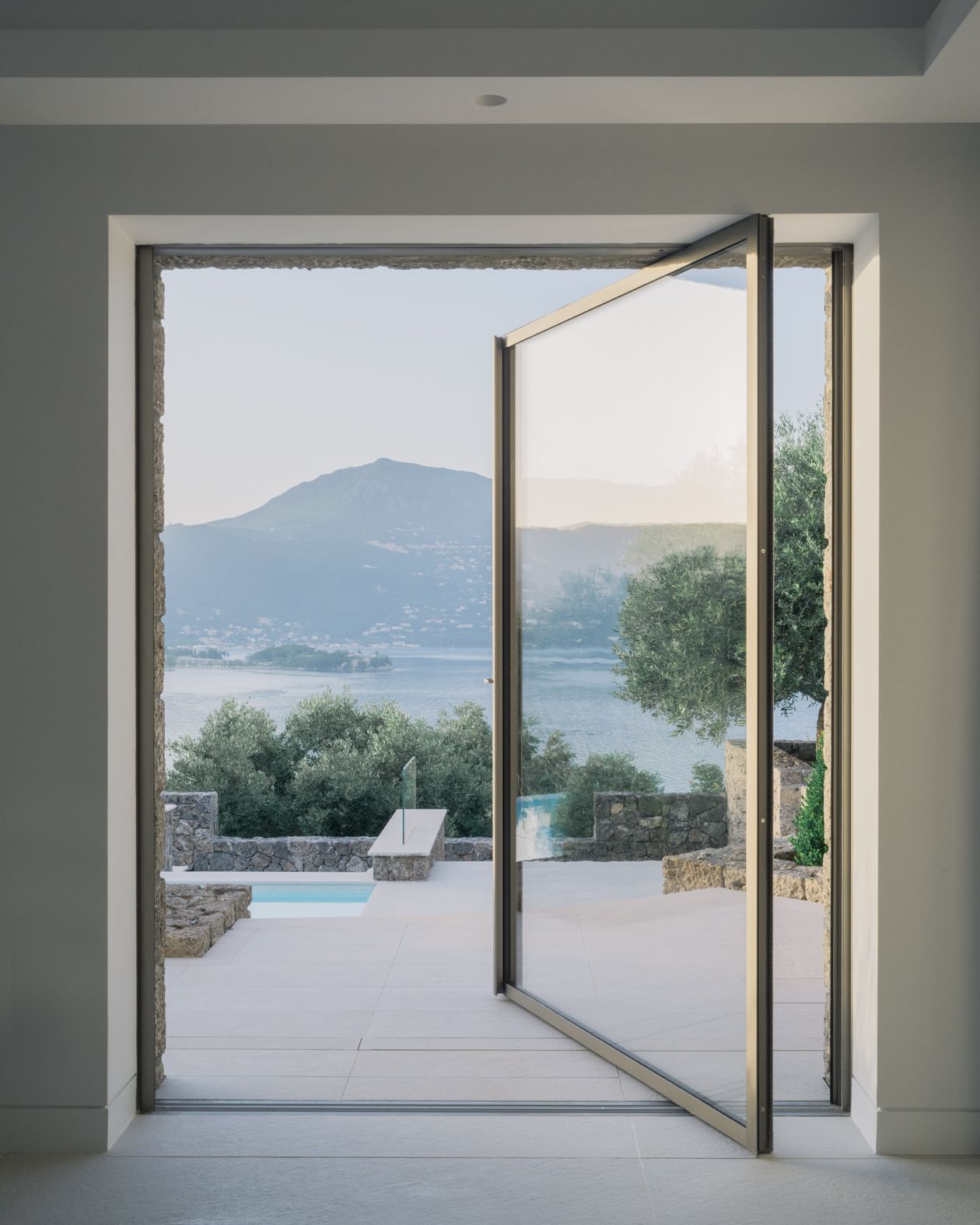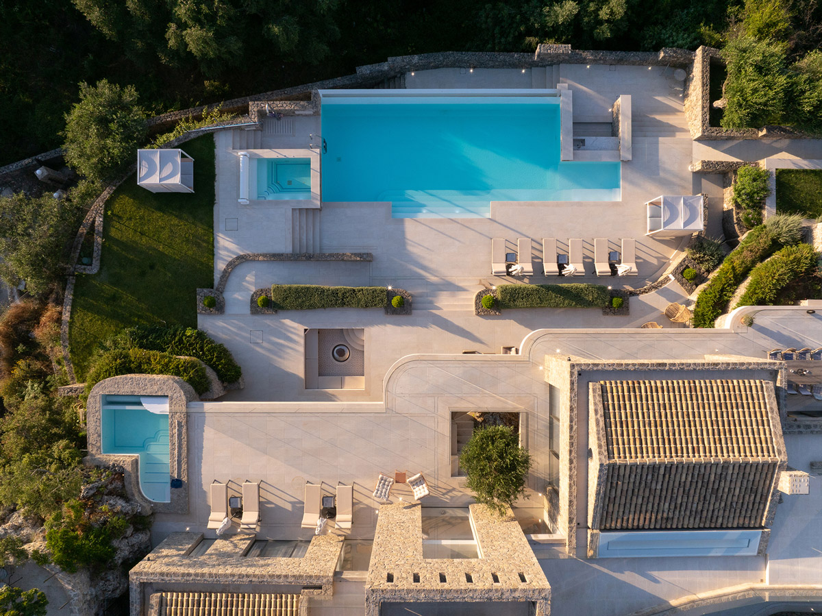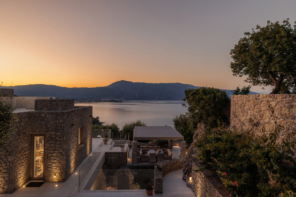 A new Corfu house, designed as a holiday home by architects Tony Wynbourne, Metron Design (Makis Gisdakis & Associates) and Georgios Apostolopoulos, balances the tightrope between the Greek island’s local vernacular forms and materials, and a sense of 21st-century minimalist architecture. Located on a hill facing the calm waters of the surrounding blue sea, this project was conceived to make the most of its 180-degree vistas and natural environment.
